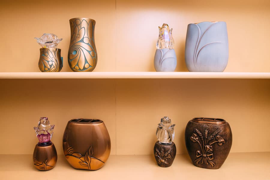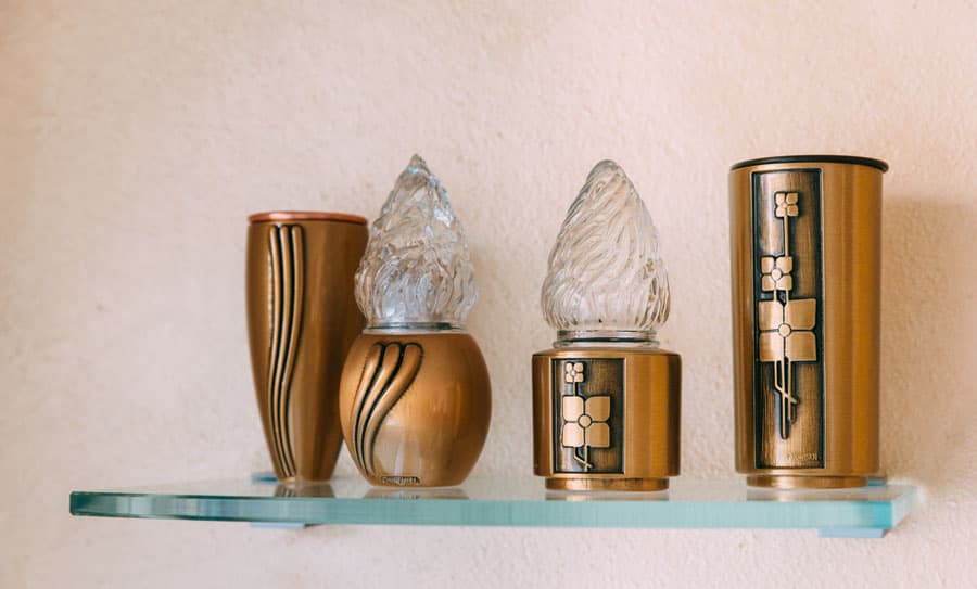 Venendo a trovarci nei nostri ampi spazi espositivi troverete un’ampia scelta di vasi, lampade, ceramiche e urne per le decorazione tombale: il nostro personale saprà indicarvi al meglio, nel pieno rispetto delle vostre volontà e di quelle del defunto.