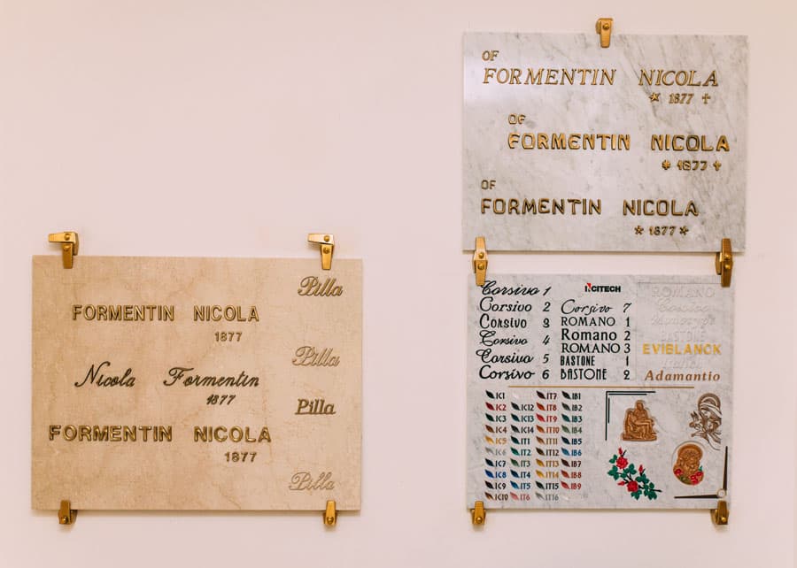 Possiamo inoltre provvedere a lavorazioni su marmo personalizzate: ci riferiamo in particolare alle incisioni di caratteri e decorazioni, al fine di rendere unico il luogo della sepoltura.